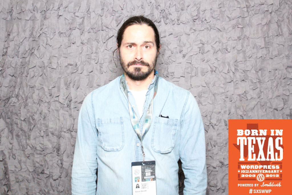 aaron ekroth getting animated at the SXSW WordPress Smilebooth