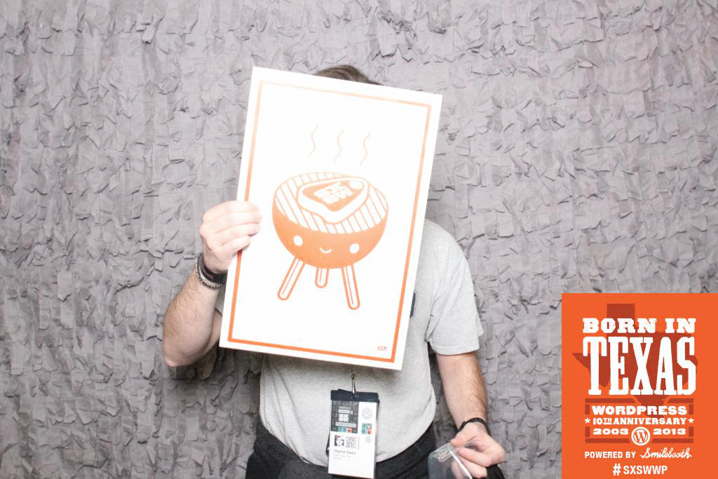charlie owen getting animated at the SXSW WordPress Smilebooth